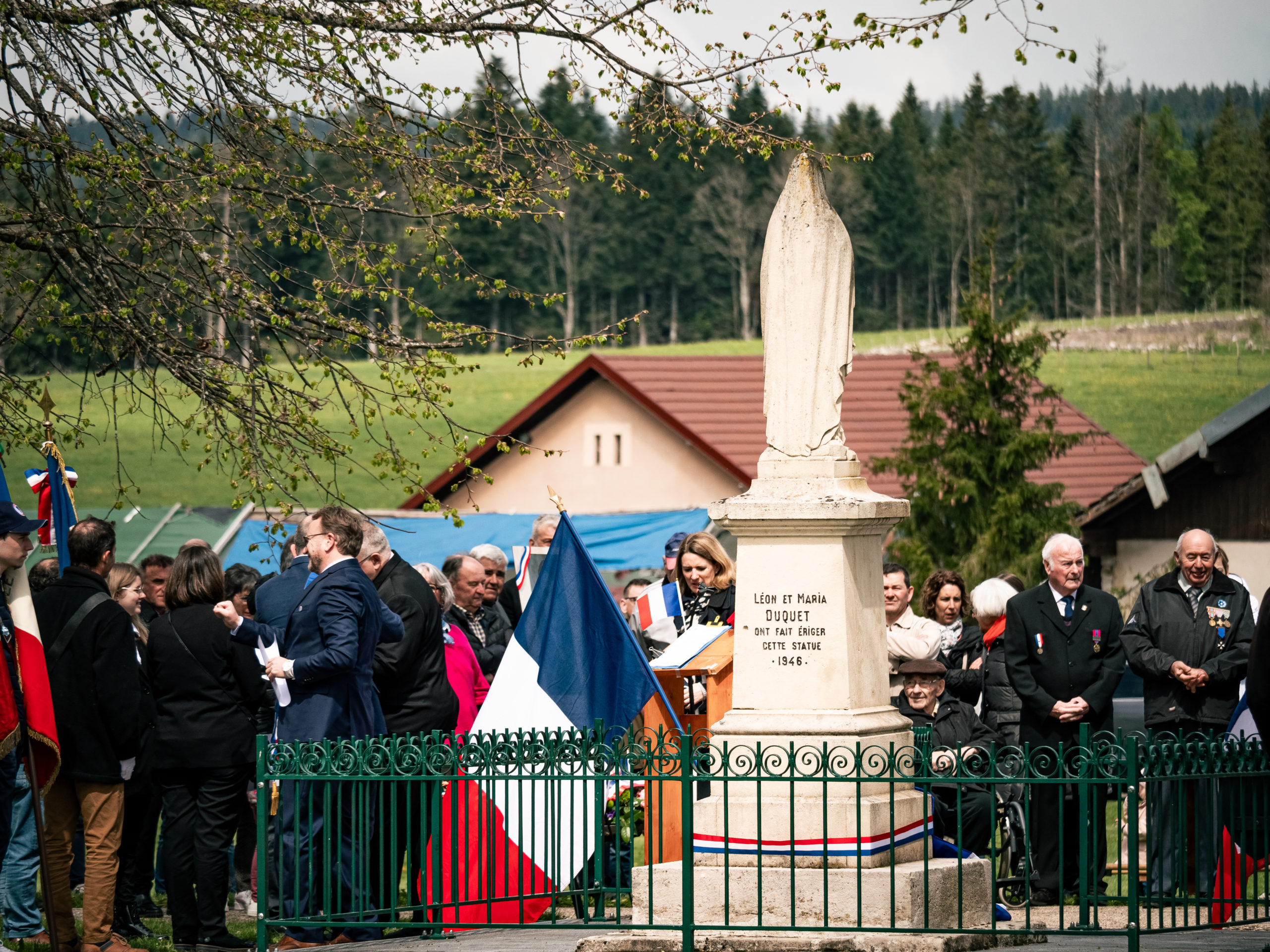 En présence du Souvenir Français, de l’association des Anciens combattants des 5 villages (Le Bélieu, Noël-Cerneux, La Chenalotte, Le Barboux, Grand’Combe des Bois), de M. Laurent Thiery, docteur en histoire, spécialiste du camp de Mittelbau-Dora, d’une partie de la famille de Roger et de plus d’une centaine de personne, la commune de La Chenalotte a rendu hommage à Roger Cuenot, résistant-passeur, membre du réseau AGIR né le 30 octobre 1910 à La Chenalotte et décédé en déportation dans le camp de Dora le 29 décembre 1944.