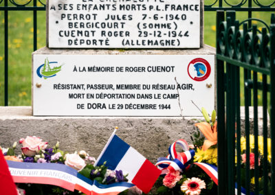 A cette occasion, une plaque a été dévoilée et une brochure sur l’itinéraire de Roger Cuenot du Souvenir français a été présentée. Celle-ci sera distribuée à l’ensemble des habitants de la commune. Enfin, M. Thiery a remis un exemplaire numéroté du « Livre des 9000 déportés de France à Mittelbau-Dora » dont il a été le directeur scientifique publié au Cherche-Midi, à la petite fille et à l’arrière petit-fils de Roger, présents à la cérémonie.