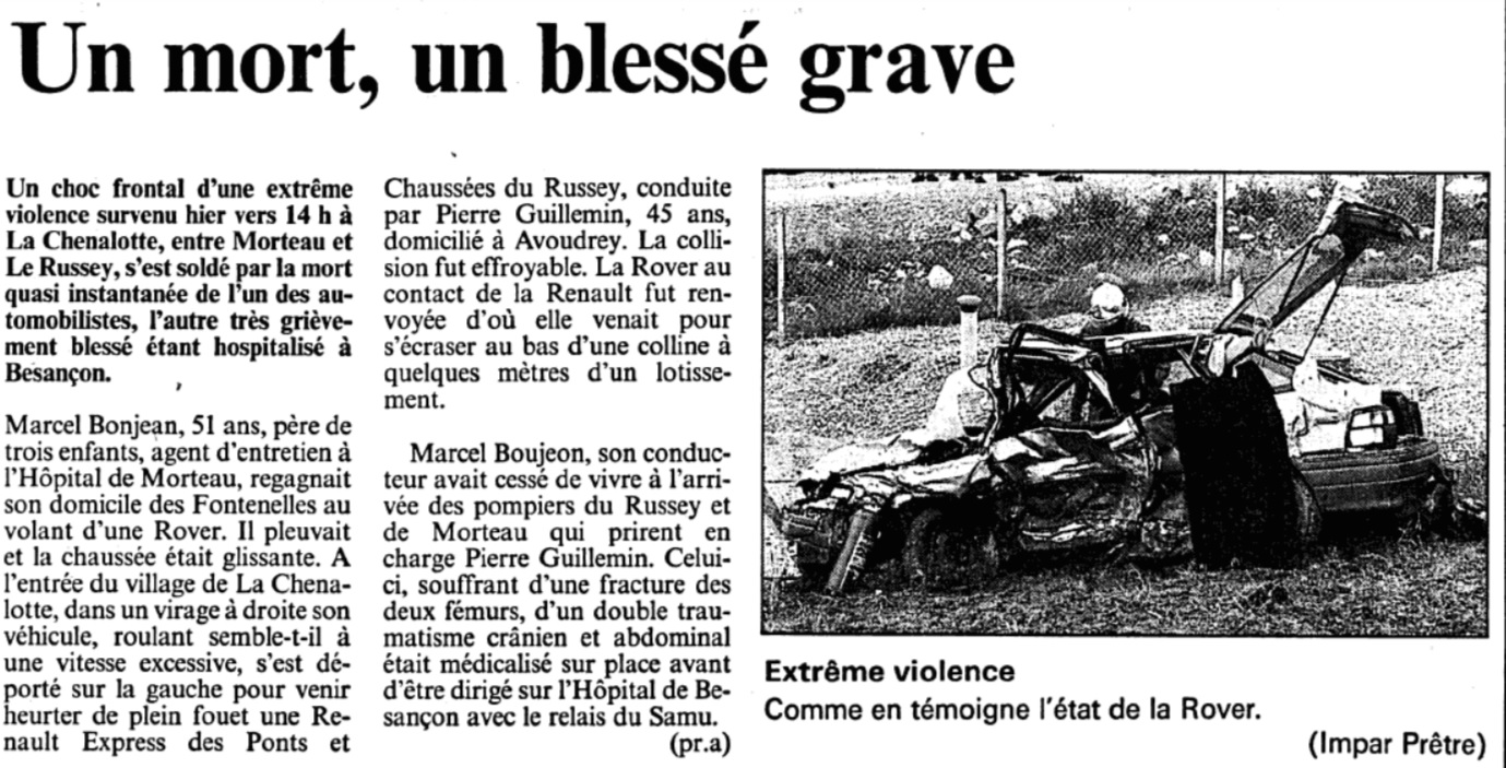 et sur cette route départementale sur la commune de La Chenalotte comme le dimanche 11 mai 2008 avec le décès de deux motards (source Le Figaro) ou encore le 28 mai 1993 (article publié dans le journal suisse l’Impartial du 29 mai 1993) :