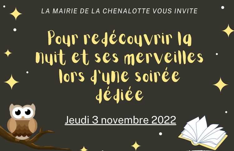 Cette soirée dédiée à la redécouverte de la nuit et de ses merveilles sera poursuivie d’une réunion publique sur la démarche de l’extinction à 19h30 à la grande salle des Tilleuls en présence du PNR.