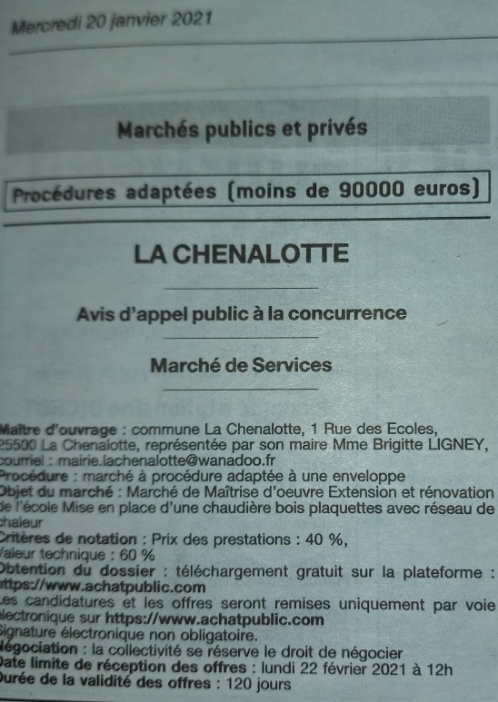 Annonce publiée dans l’Est Républicain le mercredi 21 janvier 2021.
